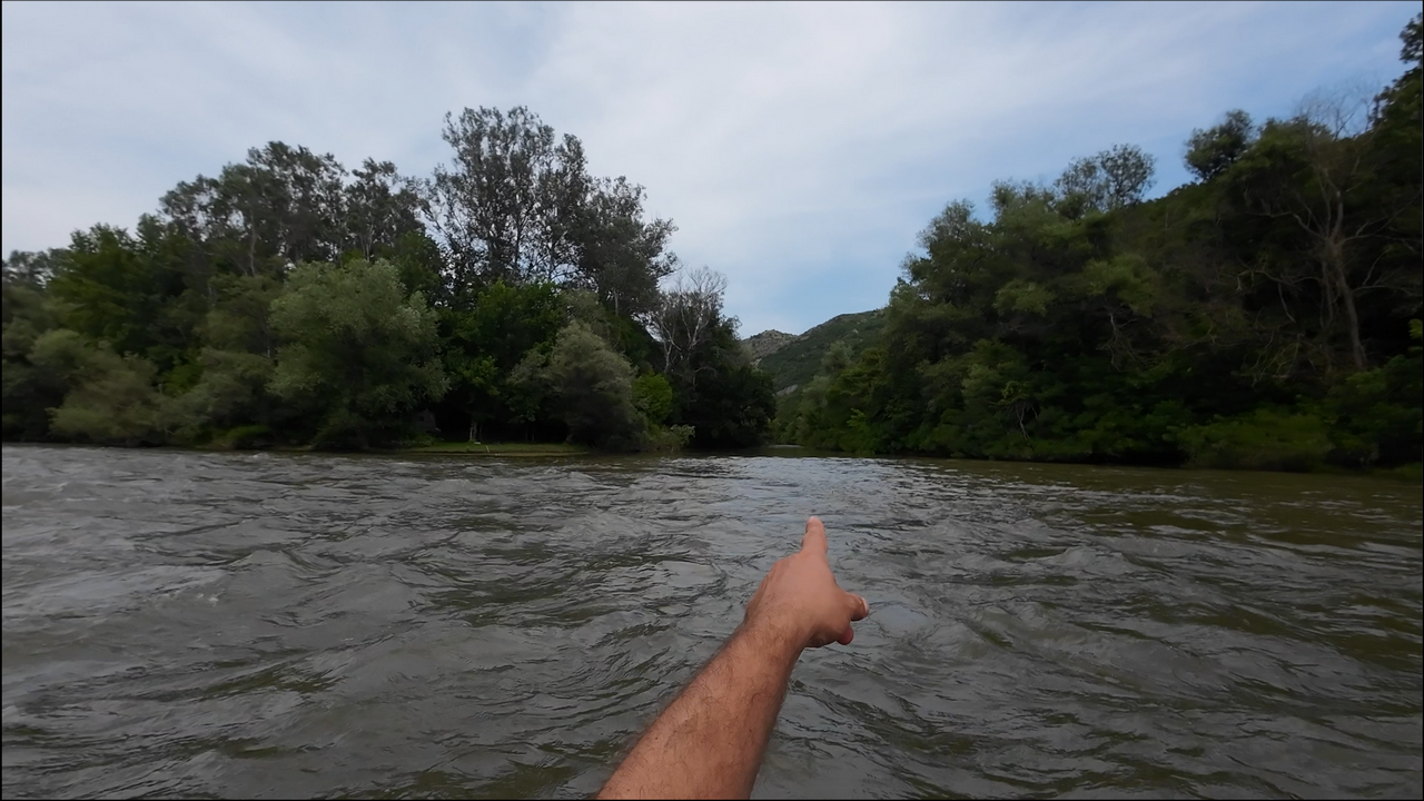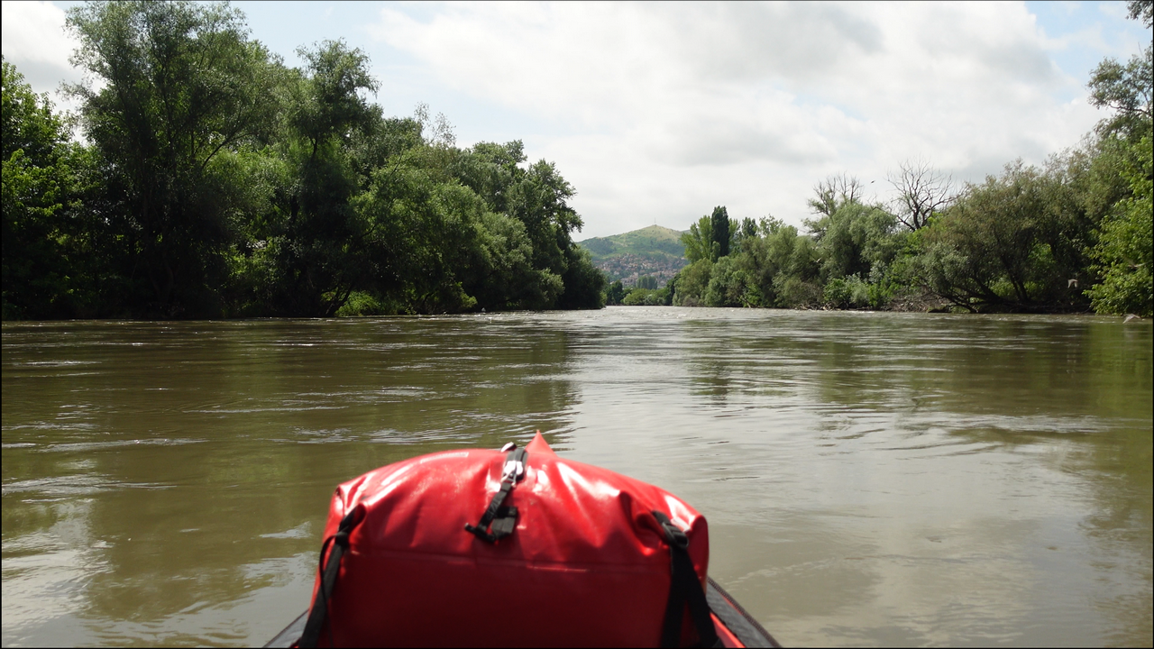 Mit Verlassen der Schlucht beruhigt der Fluss sich endgültig und wir steuerten auf die Stadt Veles zu. Vorbei am Stadtpark, unserem Einsetzpunkt vom letzten Jahr (2022 waren wir erstmals auf dem Vardar unterwegs und sind in zwei Tagen von Veles bis Demir Kapija gepaddelt). Für Pero damals harte erste Meter, da er ohne Paddelerfahrung mit einem zügig fließendem Fluss konfrontiert wurde. Letztlich hat er damals aber alles gut gemeistert und wir witzelten dieses mal, ob er denn wieder zu großen teilen Rückwärts durch Veles fährt. Das tat er natürlich nicht, fast schon gewohnt gekonnt meisterte er Souverän auch diese Passage und zügig trug uns der Vardar wieder aus der Stadt heraus auf ein landschaftlich ziemlich schönes Teilstück.