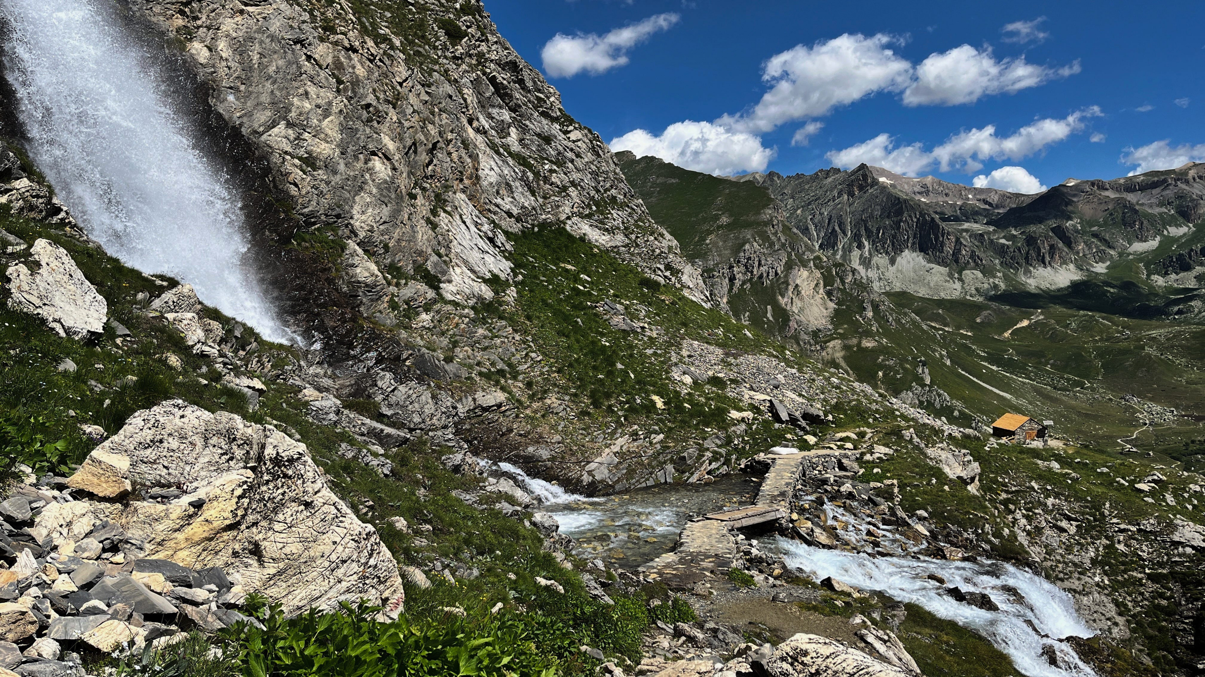 der Weg zurück, einer der Wasserfälle und das Rifugio Stoppia und-kaum Menschen