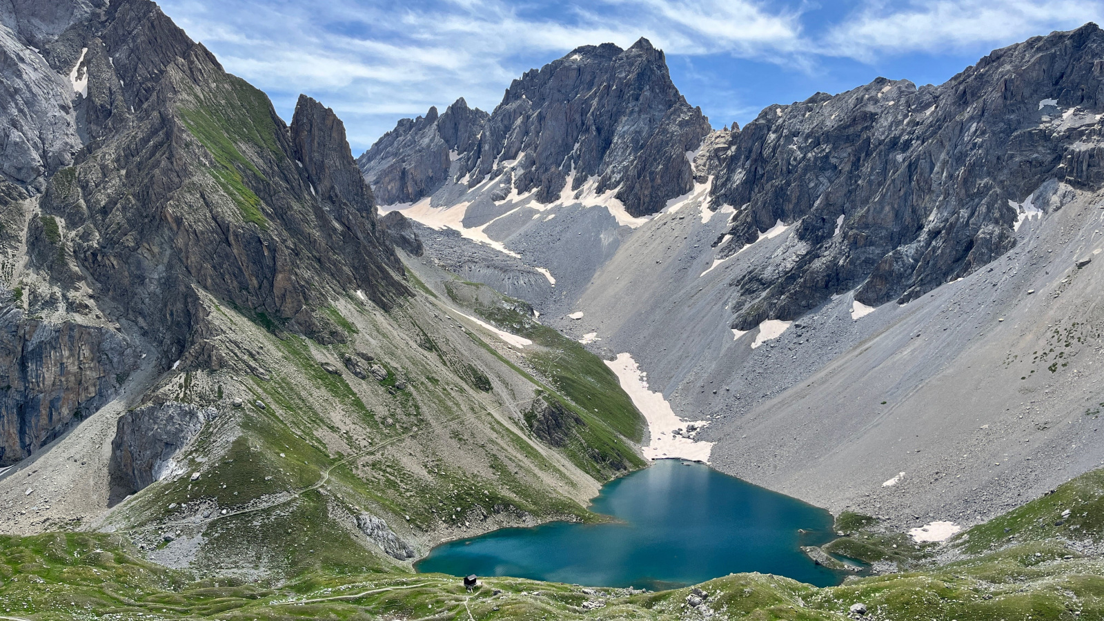 das Bivacco Enrico e Mario unten im Bild zu erkennen