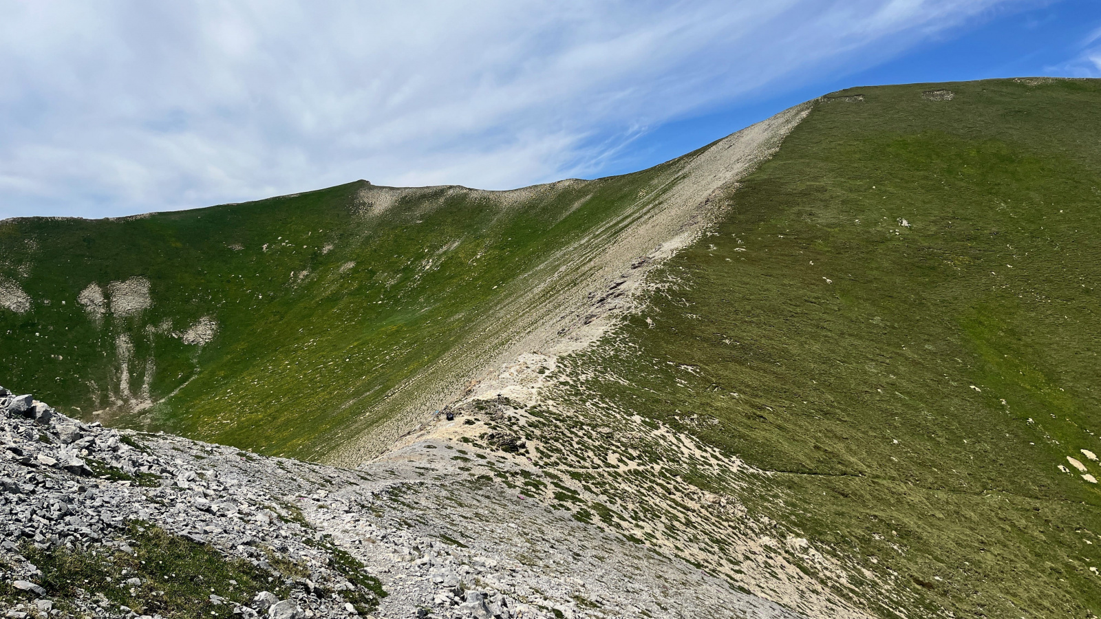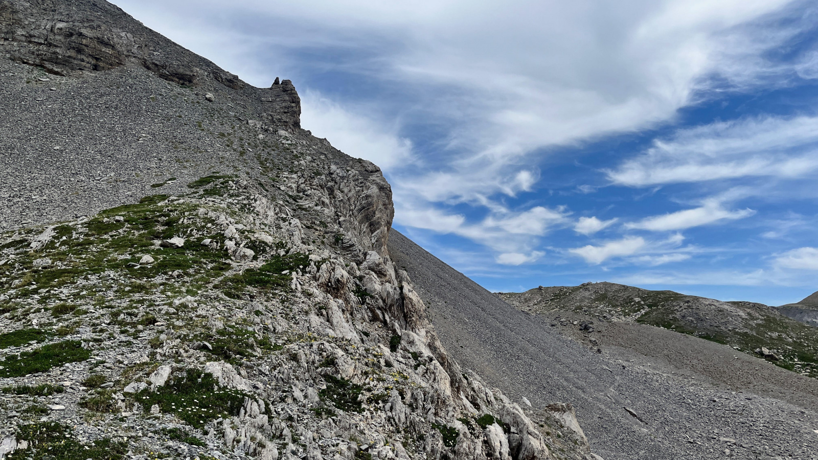 Col Sautron, links an der Abbruchkante verläuft mein weiterer Weg nach Süden