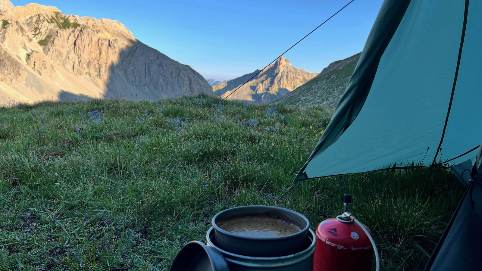 Der 20. Tag meiner Wanderung, der 18. Juli 2024, bricht an. Auch heute wieder mit Sonne, blauem Himmel und leichter Bewölkung. Und Kaffee.