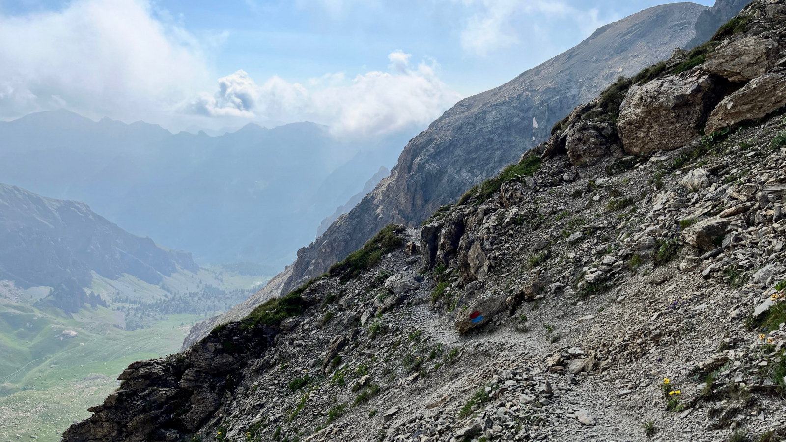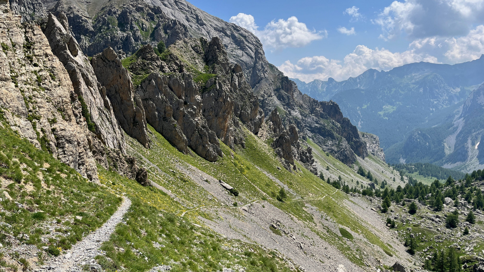 der Pfad entlang der Abbruchkante Richtung Monte Viraysse