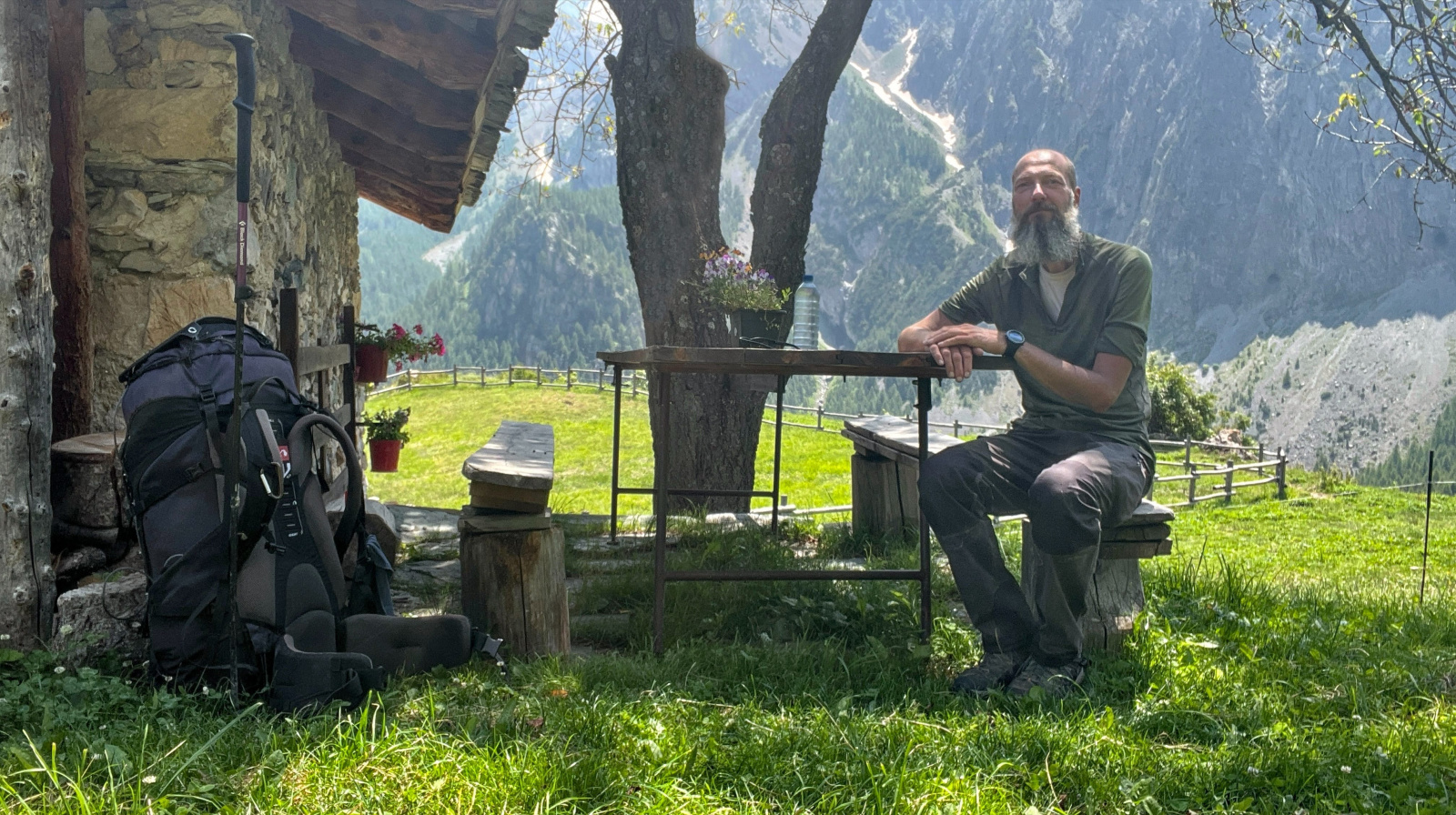 Am Rifugio Malvaggia vorbei geht es immer weiter ins Tal. Als Ich an einigen Hütten vorbeikomme und sogar einen Brunnen finde mache Ich Pause, sitze nachdenklich auf einer Bank. Es ist schon immer wieder spannend, beruhigend und irgendwie ermutigend wie sich das ein oder andere manchmal so fügt. Obwohl Ich ja auch diesmal völlig planlos und unvorbereitet losgegangen bin, hat sich diese Tour so schön entwickelt, und trotz der ein oder anderen etwas kritischen Situation sowie mehreren Materialausfällen bin Ich auch dieses mal wieder unverletzt, glücklich und zufrieden unterwegs gewesen.