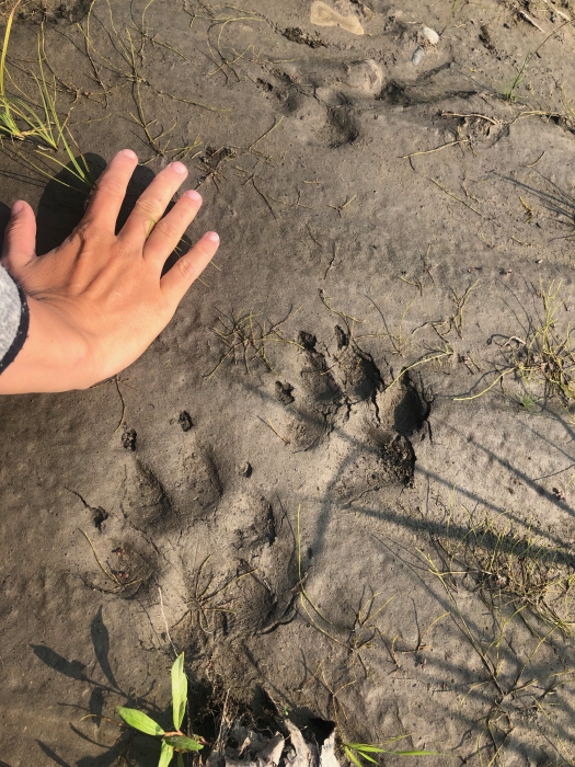 Auf dem Weg zurück zum Camp haben wir aber Spuren von jeder Sorte Großwild gesehen und in der Früh dann auch die Abdrücke eines großen Wolfs direkt bei unserem Camp, dessen Spuren am Vorabend noch nicht da waren.