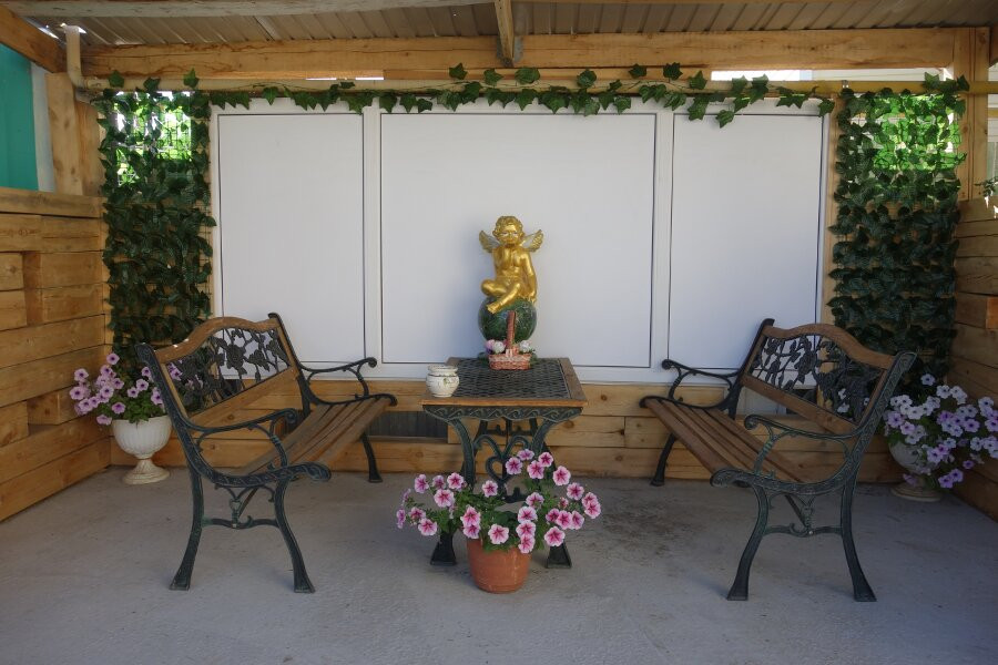 Lauer Sommerabend im Hof unserer Unterkunft. Eine Weile sitzen wir draußen, doch mit der Zeit sammeln sich immer mehr Mücken, so dass wir irgendwann die Flucht nach drinnen ergreifen...