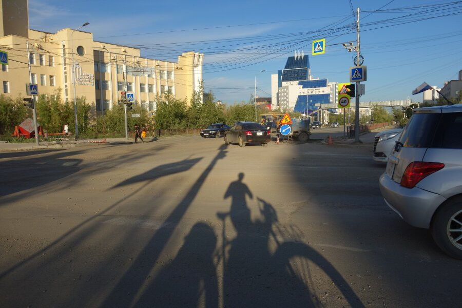 Unterwegs in Jakutsk. Mit dem Rad komme ich überall schnell hin und am Abend auch wieder rasch zurück.
