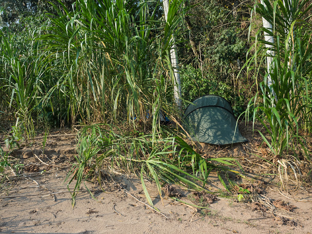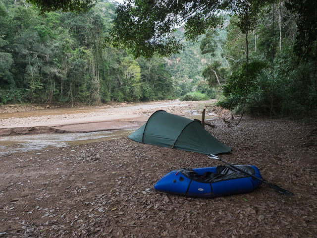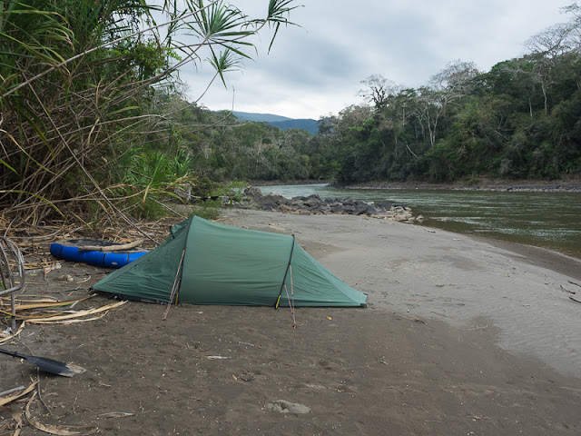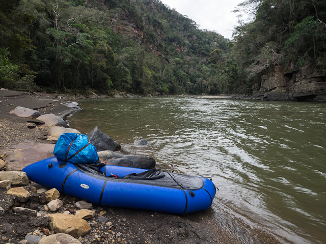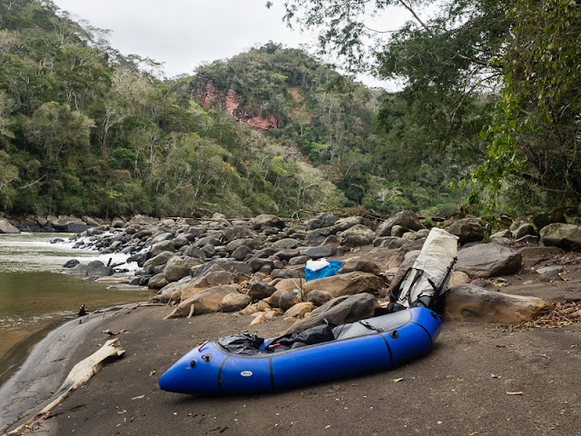 Zurück am Tuichi pumpe ich so schnell wie möglich das Boot auf, und verstaue mein Gepäck rasch auf dem Packraft. Wie schon Rüdiger Nehberg geschrieben hatte, ist der Aufbruch aus der letzten Siedlung in die Wildnis stets ein kritischer Punkt. Glücklicherweise sind die meisten Menschen gut, aber für einen Bösewicht ist ein einsamer Packrafter auf einem abgelegenen Wildnisfluss unter Umständen ein verlockendes Angriffsziel...