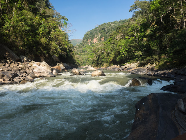 Als nächste plane ich, den Tuichi Fluss im Madidi Nationalpark auf einer Länge von 250-300 Kilometern mit meinem Packraft zu befahren. Madidi ist mit angrenzenden Gebieten in Bolivien und Peru eines der größten, geschützten Regenwaldgebiete Südamerikas. Dabei ist die Artenvielfalt hier besonders hoch. So kommen 14 % aller Vogelarten der Welt in diesem Gebiet vor! Was Madidi so besonders macht, ist auch, dass sich der Park von den Höhen der Anden auf fast 6000 Metern, bis ins Tiefland auf nur noch 180 Meter Meereshöhe erstreckt. Zwar kann man den Tuichi natürlich noch nicht kurz nach seiner Quelle befahren, aber auch weiter unterhalb ist er ein schneller Fluss mit zahlreichen Stromschnellen, die sicher eine Herausforderung für mich und mein kleines Boot darstellen werden...