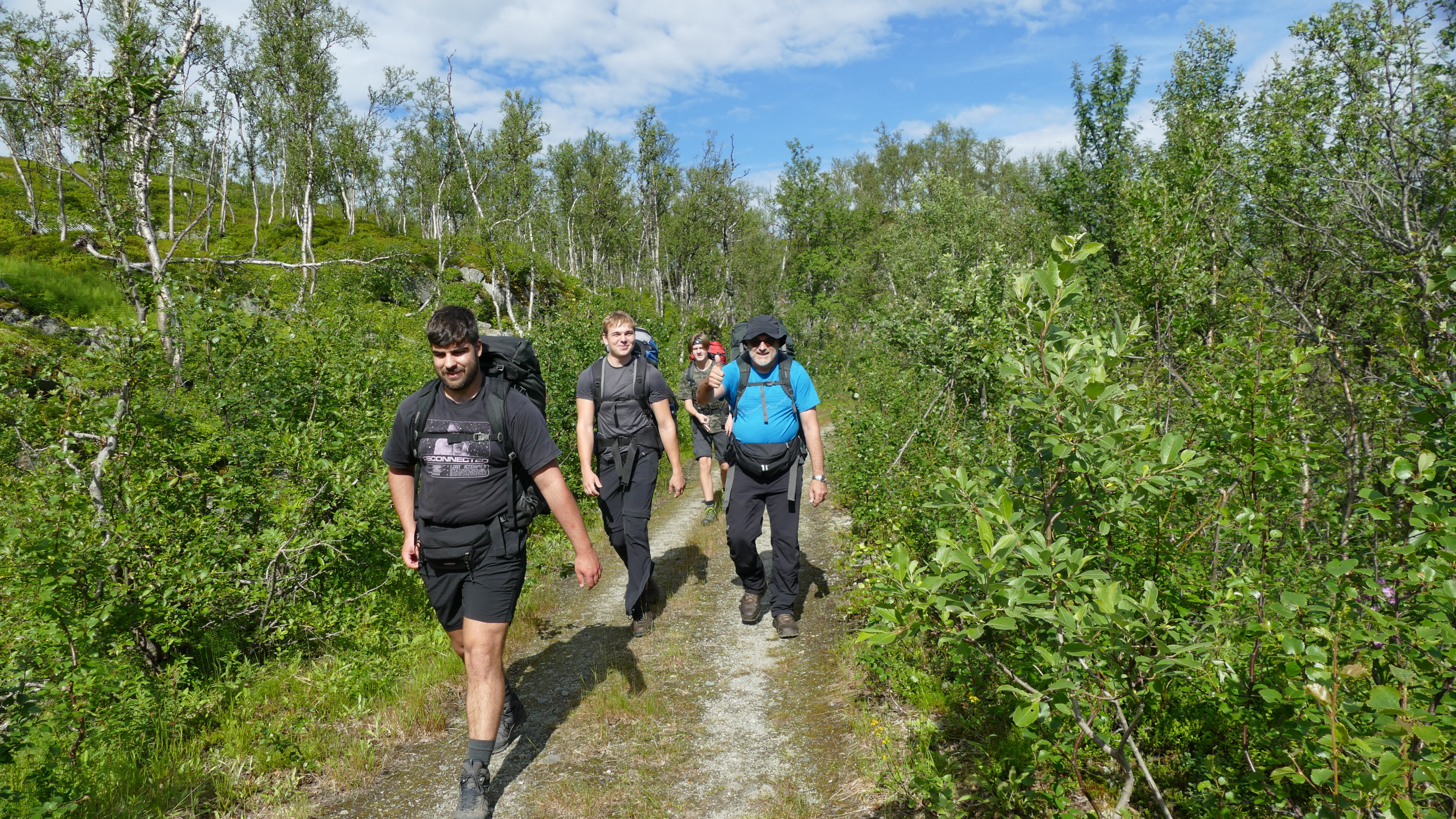Meine jahrelangen Reisen nach Skandinavien und das gelegentliche Sehen meiner Fotos und Videos von diesen Reisen, hatten meinen Ältesten (Leon) offensichtlich neugierig gemacht. Gegen Ende 2021 äußerte er, dass er sich so eine Wanderung abseits der Zivilisation in Norwegen oder Schweden auch mal vorstellen könne. Die Idee (eigentlich seit vielen Jahren ein „geheimer“ Wunsch von mir) war offiziell geboren. Verständlicherweise würde er auf so eine Reise gern seinen Kumpel (Tim) mitnehmen, den Sohn meines jahrlangen Wanderfreundes (Martin). Tim war von der Idee nicht so richtig begeistert, musste erst noch überzeugt werden. Martin war natürlich sofort einverstanden. Also begann die Planung für eine gemeinsame Reise im Sommer 2022. Das Timing war dabei, aufgrund der verschiedenen Lebenssituationen nicht ganz einfach, aber es fand sich dann ein gemeinsames Zeitfenster für die erste Augustwoche. Während eines Gesprächs über diese Reise bekam mein Jüngster (Steven) große Ohren. Mit ihm hatte ich 2019 eine Tour im Jämtlandfjäll gemacht und ich war der Meinung, dass diese eine Tour ihm gereicht hätte. Aber … als er uns hörte, hieß es „da würde ich auch mitkommen!“ Also lief die Planung nun für fünf Personen an.