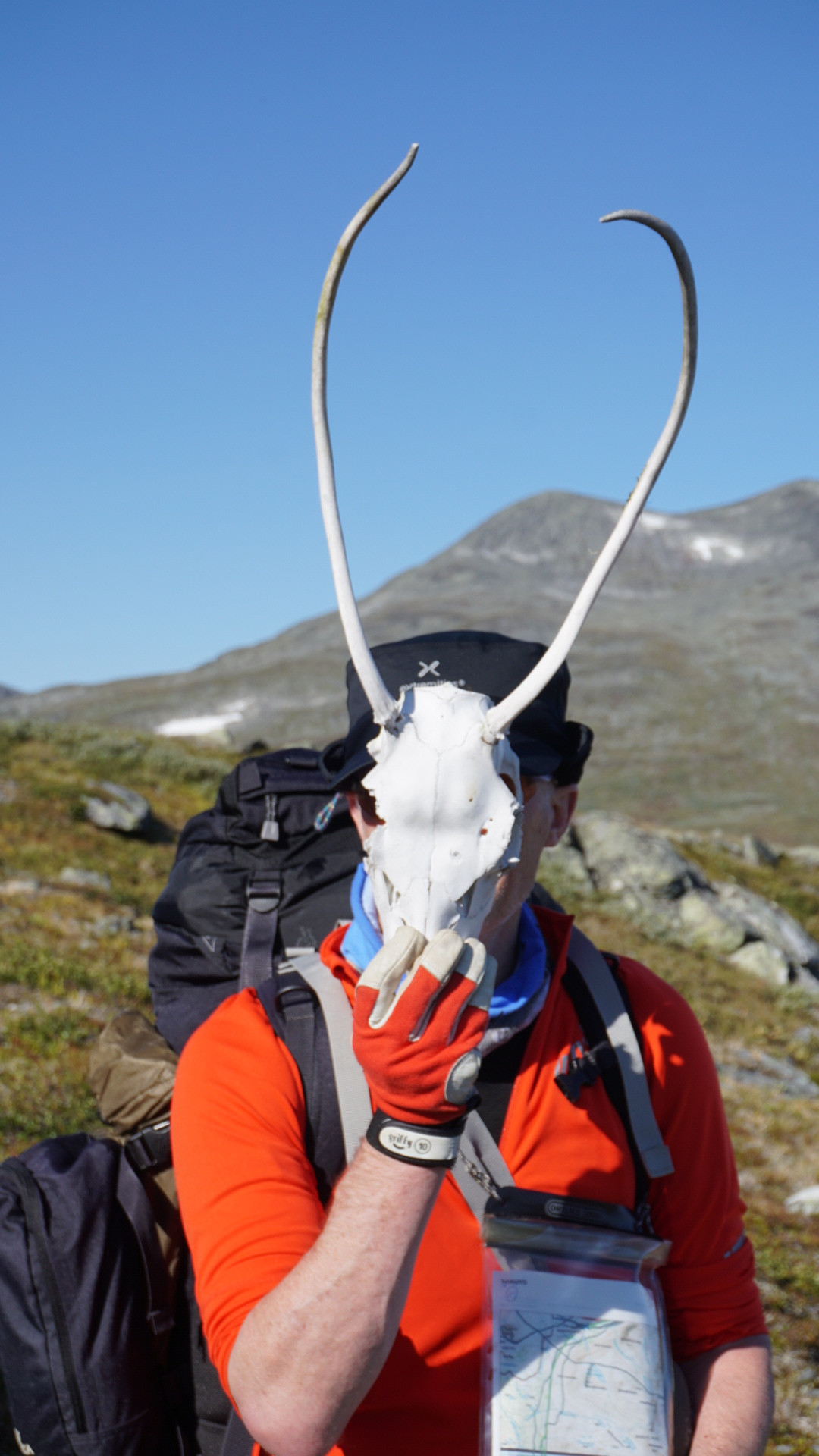 Mit Anne (Blahake), die eine ähnliche Route geplant hat, aber in die andere Richtung, stehe ich in regem Kontakt. Sie ist vor uns gestartet und sollte, wenn wir in Suorva starten, ganz in der Nähe sein, um ihre Tour in Saltoluokta oder sogar in Suorva zu beenden. Vielleicht klappt es ja zeitlich, dass wir uns treffen.