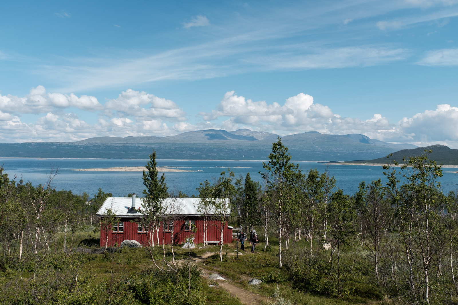 Der Ausblick auf und über den Virihaure zu meiner Rechten ist fantastisch und schon bald kommt Árasluokta in Sicht. Hier hoffe ich erneut Brot und vielleicht eine Cola erstehen zu können. Doch nach dem Abstieg zu den Hütten finde ich sie verlassen vor und eine Notiz an der Tür, dass der Hüttenwart erst gegen 18 Uhr zurück sein wird. Da es erst kurz vor 12 Uhr ist, verzichte ich also auf den Luxus, gehe direkt weiter und mache einige Zeit später eine kleine Mittagspause.