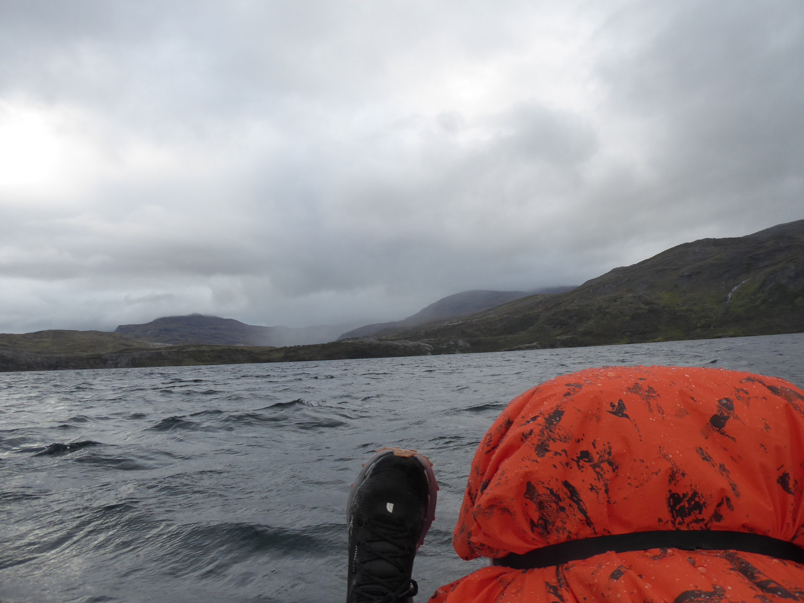 Als ich die ersten Seen erreiche sehe ich, dass man da eigentlich super paddeln könnte. Aber heute ist mir gar nicht danach. Es ist lausig, außerdem frischt der Wind schon wieder auf und mir ist selbst beim Gehen kalt. Da will ich nicht aufs Wasser.