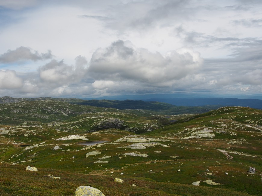 O.K., also Fähre, nicht an der Westküste, eher in der Nähe von Oslo, über 1100 m Höhe, gut ausgebaute Wanderpfade, nicht zu viel hoch und runter, Waldgebiet angrenzend und es muss einen Zufahrtsweg auf mindestens halbe Höhe geben. Antwort: Norefjell oder Blefjell. Ach ja, viele kleine Seen, also Blefjell.