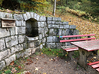 Nicht weit entfernt auf dem „Höhenweg“ (bei Nord-Süd-Laufrichtung des E1) befindet sich noch vor der Hütte die Quelle „Lennemannsbörnchen“ mit Sitzgelegenheiten: Lage ca. zwischen der Kreuzung Mischebachstraße/Höhenweg und Trödelsteine, wahrscheinlich bei N50° 44.5702’ E 8° 0.8889’.