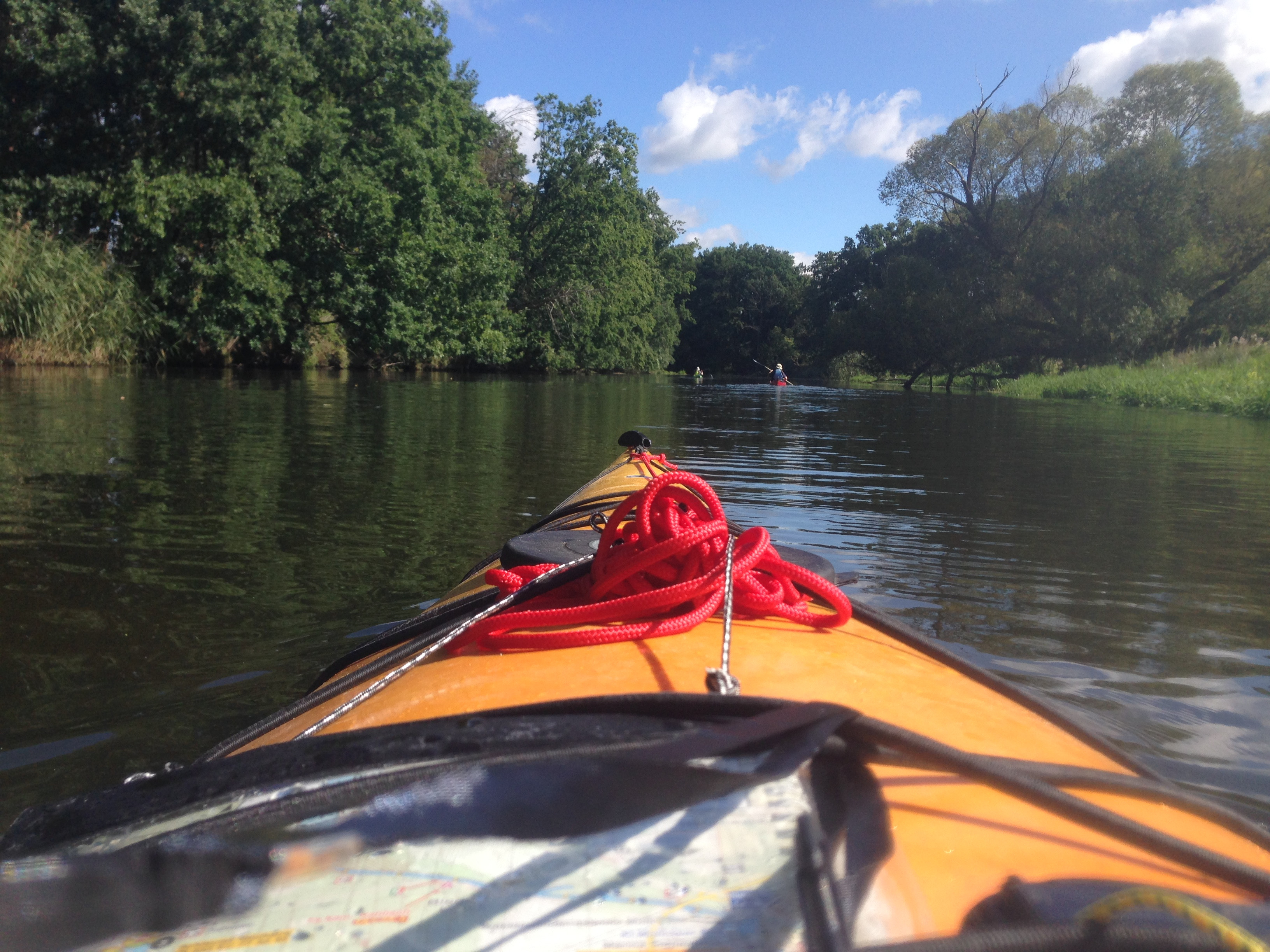 Als wir aus Berlin rausgefahren wurden, hat es geschüttelt wie aus Kübeln. Wir haben die Kajaks im Regen gepackt und sind im Regen aufs Wasser. Deshalb habe ich da die Karte nicht studiert, zuerst ging es einfach "dem Fluss entlang". Nach kurzer Zeit gab es eine Verzweigung, "alte Spree" und "neue Spree (?), beide Wege waren möglich.
