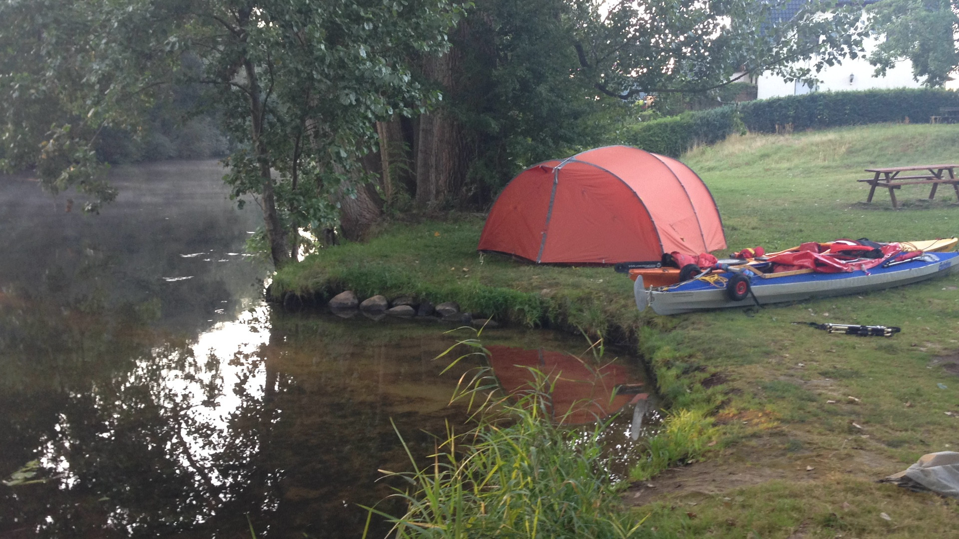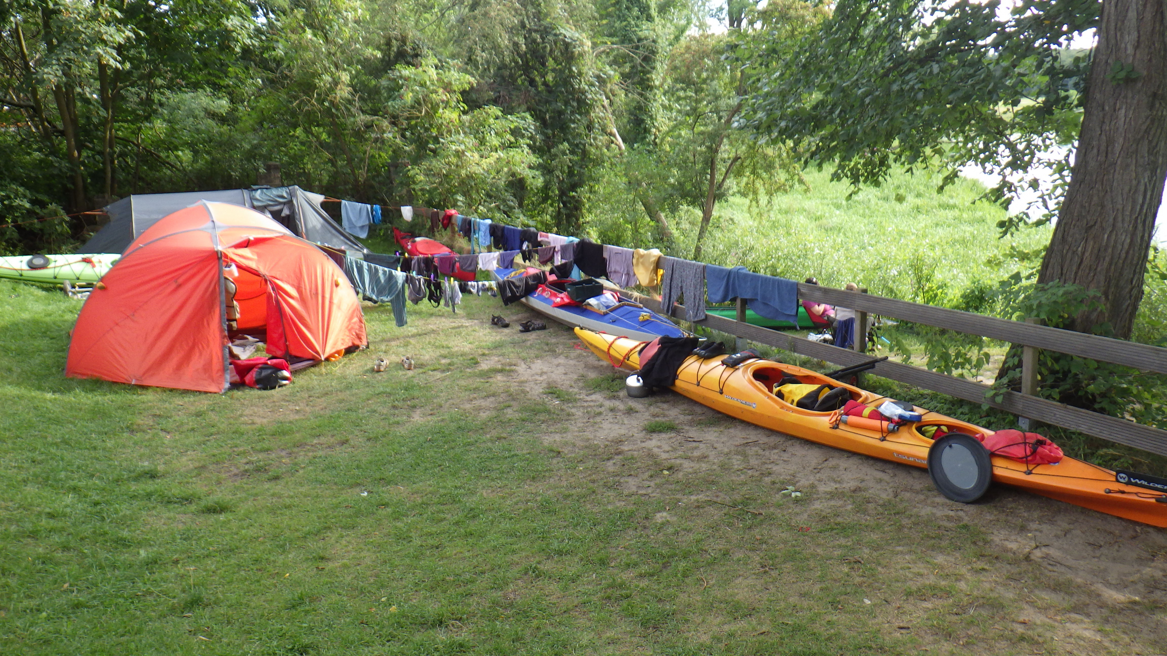 Die Gegend ist super und die Leute, die wir getroffen haben, waren sehr nett. Es war nicht viel los, auf den Wasserwandererrastplätzen standen jeweils noch so 3-4 andere Zelte.