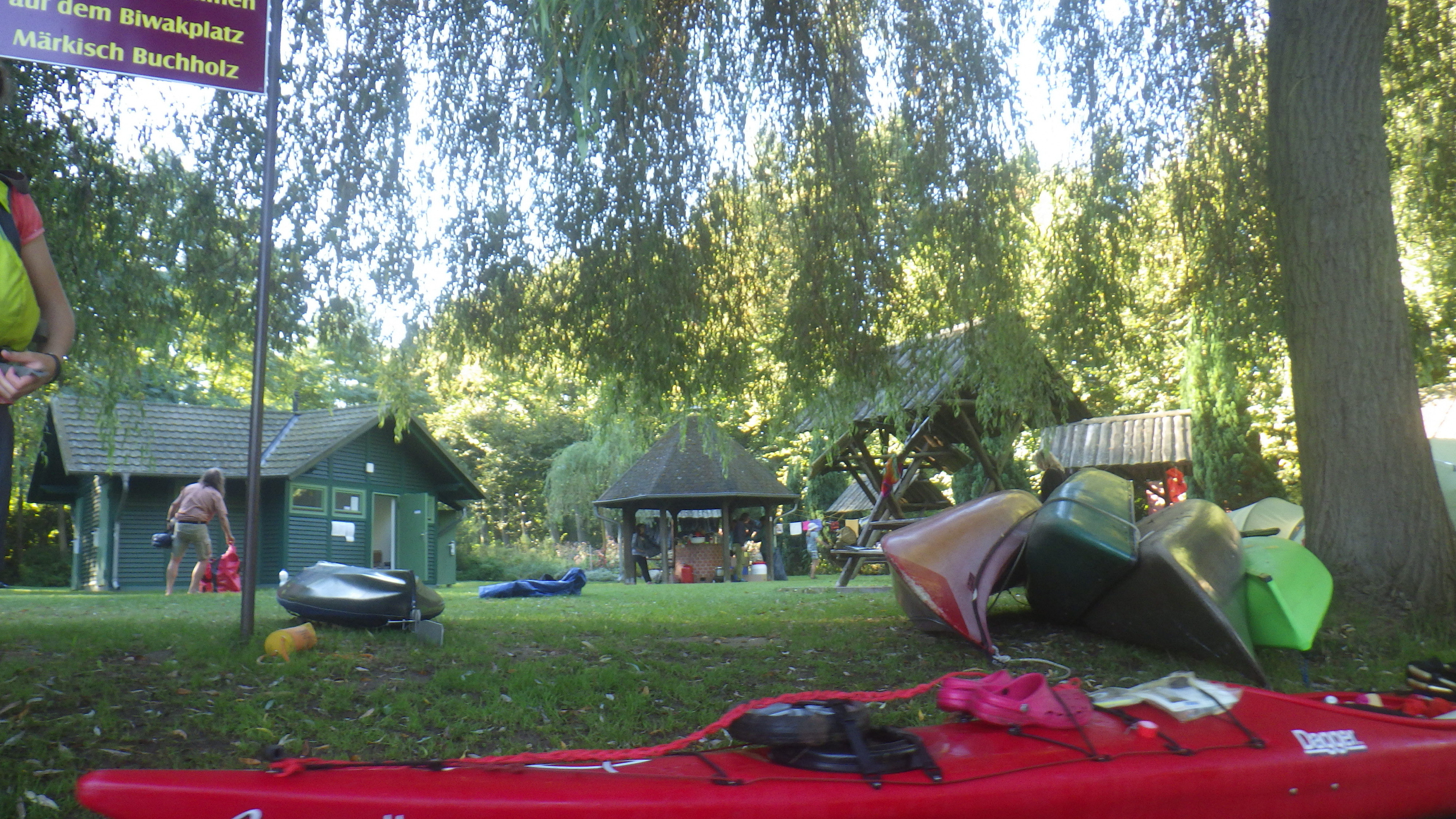 Am Anfang eines Sees, wo freundlicherweise die Sonne rausgekommen ist, gab es dann einen Kiosk, wo wir ein Bier getrunken haben. Kann gut sein, dass dies der Schwielochsee war. Es zog dann bereits wieder ein Gewitter auf und wir sind rasch noch ca 10km gepaddelt bis zu einem Wasserrastplatz. Dort zog dann das Gewitter durch, es gab Unterstände, es wurde Bier vorbeigebracht (sehr toll!) und dann konnten wir in Ruhe die Zelte aufbauen.