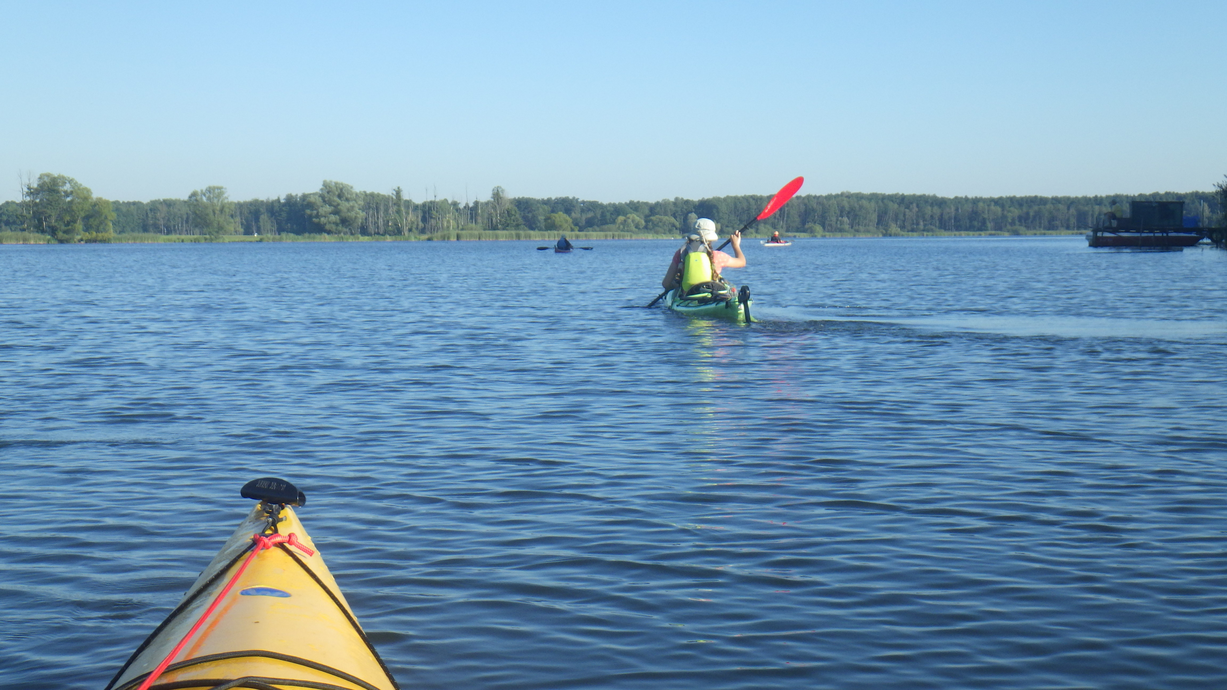 Wir haben nur sehr wenige Motorboote angetroffen. Ein kleines Stück sind wir auf dem Kanal gepaddelt, da gab es einige wenige, aber alle haben sehr früh verlangsamt und sind langsam und kaum Wellen schlagend vorbeigetuckert.